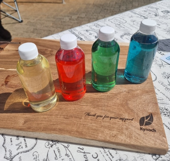 KYNOCH is baie trots op die gehalte van die vloeibare produkreeks en het van die beste voeibare aanlegte in Afrika. Met vloeibare kunsmis word hoogs plantopneembare nutriënte toegedien direk in die grondoplossing van die wortelsone of rhizosfeer. Dit verhoog die effektiwieit van die nutriënte want dit word dadelik opgeneem deur die wortels. Die vloeibare kunmis word ook op die regte groeistadiums van die gewas toegedien. Die voedingsdoeltreffendheid word verder verhoog deur verbeterde grond penetrasie in die wortelsone deur middele van die vloeibare kunsmis. Hierdie is veral voordelig met fosfaat wat baie moeilik beweeg in die grond. Nog ‘n groot voordeel van vloeibare kunsmis is dat dit maklik hanteerbaar is. Pompe en pype doen meeste van die werk en die toediening daarvan is ook baie akkuraat en egalig. Vloeibaar is ook baie aanpasbaar en daar is ‘n groot verskeidenheid produkte met kombinasies van makro-, sekondêre asook mikro-voedingselemente. Hierdie sinergie tussen die essensiële voedingselemente dra by om ‘n balanseerde voedingsbeginsel te kan volg. Hierdie beginsel maksimaliseer opbrengs en kwaliteit, terwyl verliese minimaliseer word. Die foto hieronder wys voorbeelde van die verskillende vloeibae produkte.