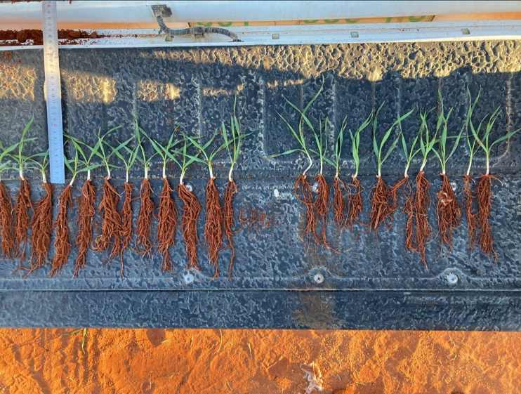 Ultra 2:3:2 (Links) met ‘n baie sterker wortelstelsel teenoor waar ‘n ander kunsmismengsel gebruik was (Regs). Foto krediet: Edward Dwyer