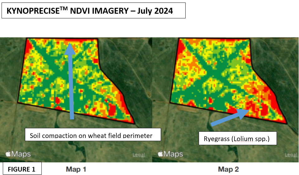 The below NDVI images (Fig 1) are good examples of in season variation in crop growth, in this case winter wheat, favorable crop growth (green areas) vs poor crop vigour in the red areas.